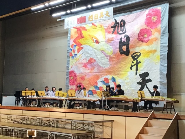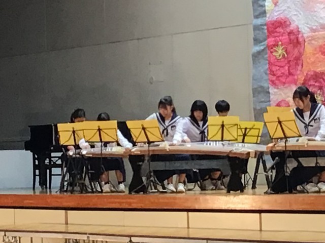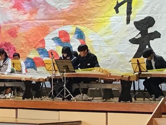 F組の筝発表です。練習の成果がばっちり発揮されていました。舞台に向かってみんなからの尊敬の眼差しが注がれていました。