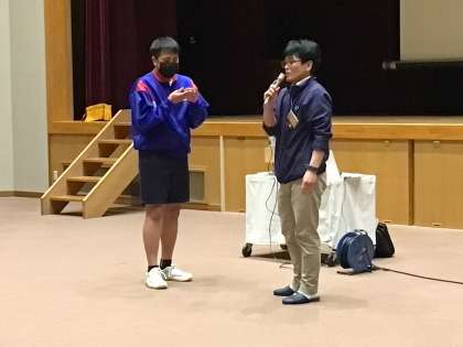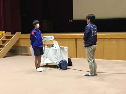曇天のため、天体観測が中止になり、講堂で講師の方から星に関するお話を聞きました。クイズにたくさん正解した人は、本物の隕石を触らせてもらえました。今日は新月だったので、天体観測にはもってこいの日だったので残念ですが、よい時間を過ごせました。