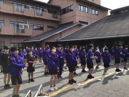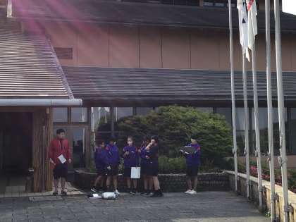 朝の集いです。まだ、眠そうです。今日は中国語バージョンのラジオ体操でした。そもそも日本語でもうろ覚えなので、かなり自由な運動になっていました。次は朝食です。