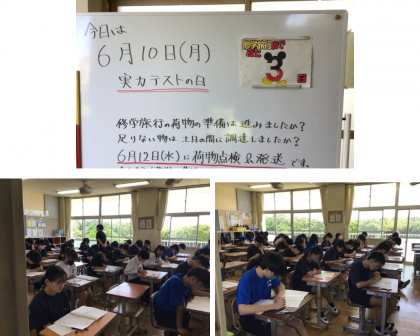 2年生が林間学校から戻って来て、日常生活が戻るかと思いきや、3年生は、木曜日からの修学旅行を前にして、実力テストに取り組んでいました。その他の学年は、通常モードというところでしょうか。