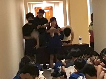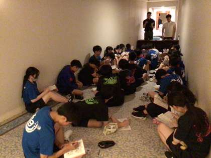 部屋長会の様子です。今日の活動は、みんな時間をきちんと守ることができました、と主任の先生から褒めてもらいました。明日は分散研修があります。電車の遅れも多々あるようなので、不測の事態への対応力が試されるかもしれません。本日の配信はこれにて終了です。生徒たちももう寝ているようです。