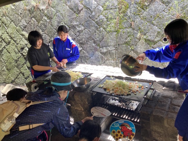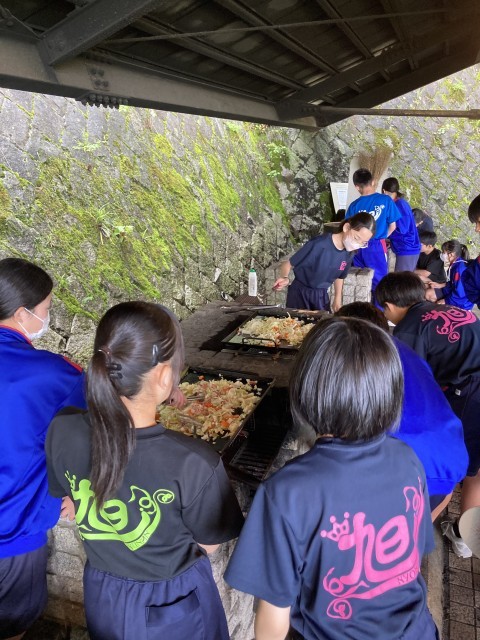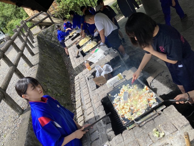 どうやったら早く火が通るか、野菜の切り方、鉄板への具材の置き方など、昨日の経験を活かしながら調理しています。