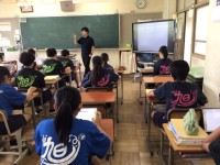 授業の振り返りをタブレット端末で行っています。最初はうまく繋がらなくてどきどきで...