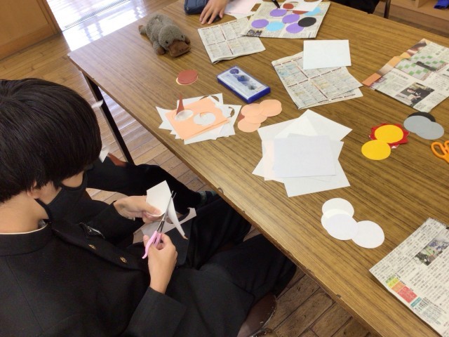 いよいよ来週に迫った小中交流会の準備も大詰めです。紙飛行機大会のメダル作りをしました。