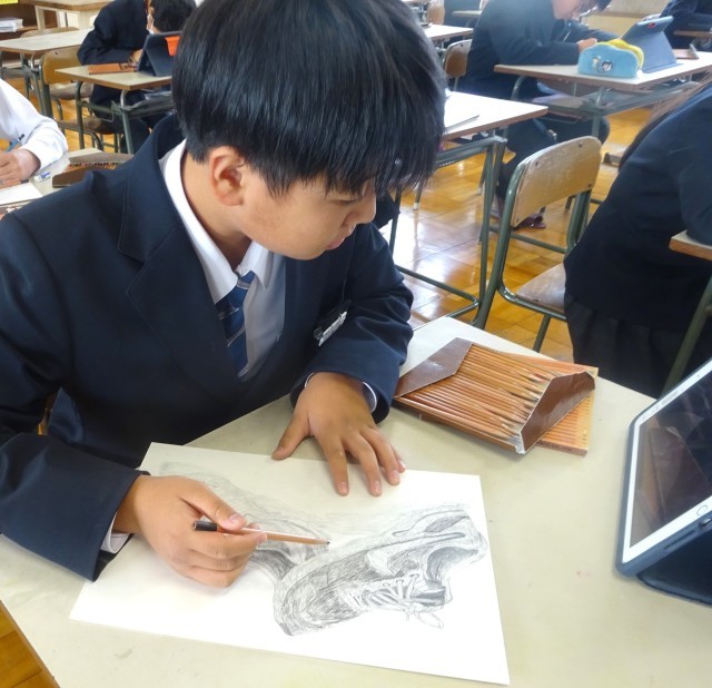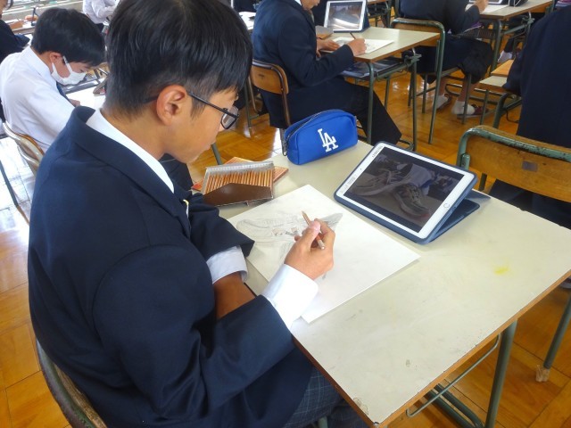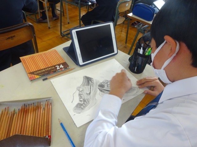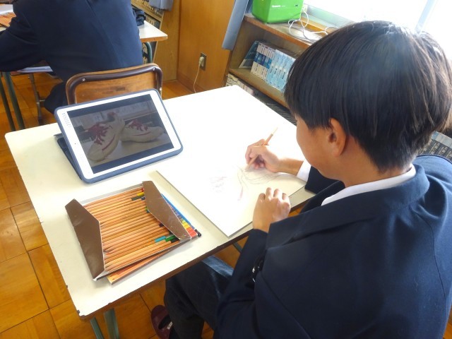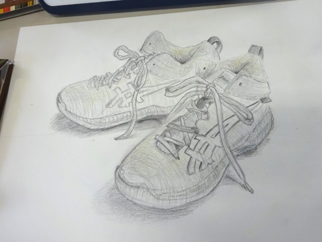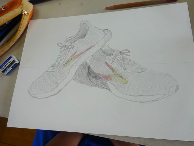 靴の置き方も工夫して、色えんぴつで陰影を上手に表現しています。