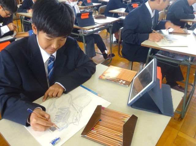 ★色えんぴつを使って、色の濃淡を表現しながら彩色していこう。