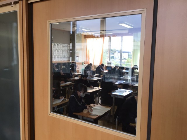 テストの邪魔をしてはいけないので、廊下から撮影しました。