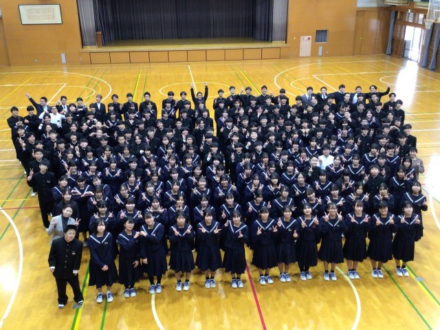 3年生が、卒業アルバムの学年写真を撮影しました。