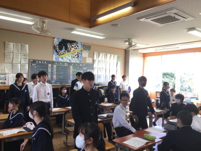 座る姿勢、歩き方、礼の角度など、1学期のマナー講座で教わったことを振り返りながら行いました。