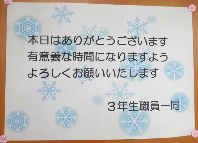 3年生の皆さん、自分の進路に合わせ、見通しをもって準備を進めていってください。