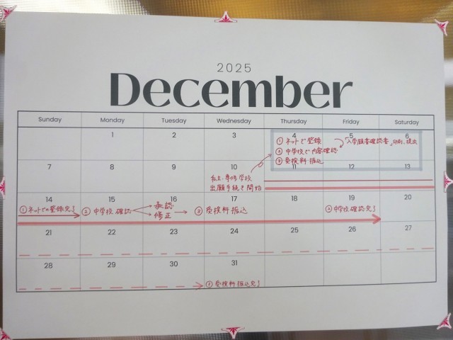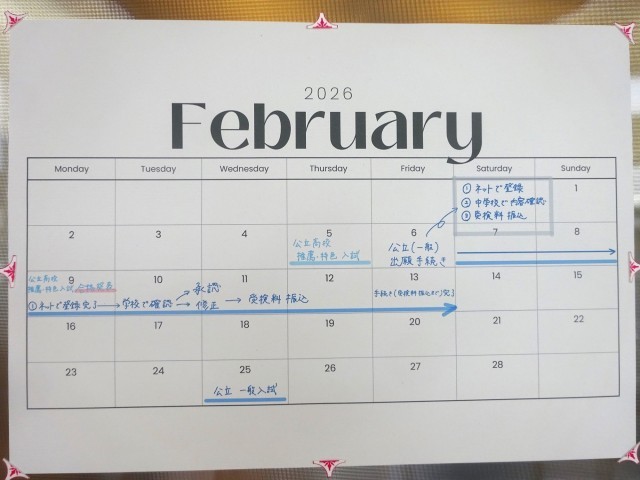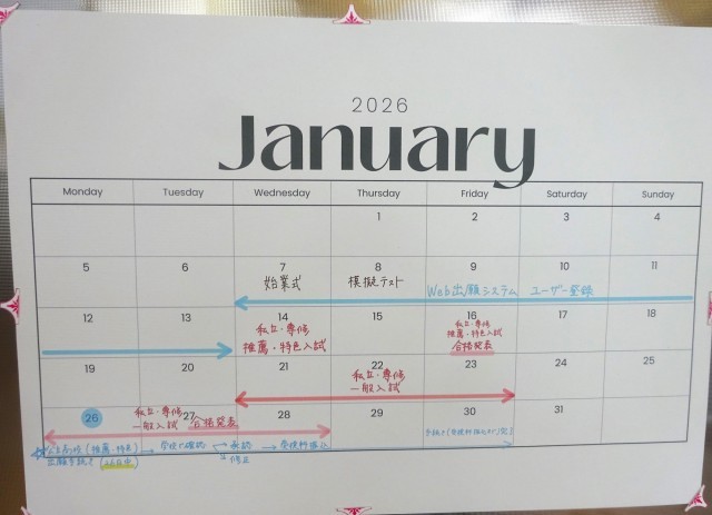 3年生の廊下には、今後の進路日程を記したカレンダーが掲示されています。