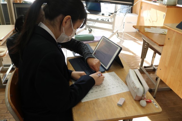 自分の受験する学校や興味のある学校まで行き方をタブレット端末で調べています。