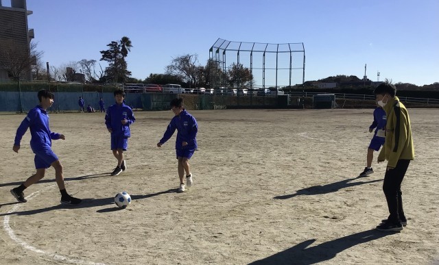 4人でパスを回し、取られないように協力しています。リフティングにも挑戦中!