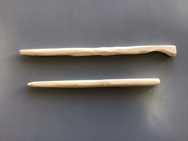 凹凸をつけたりやすりをかけたりして、持ちやすい素敵な杖が完成しました。