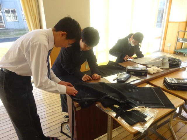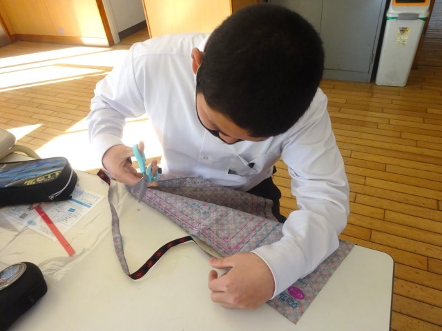 裁ちばさみで布を切っていました。