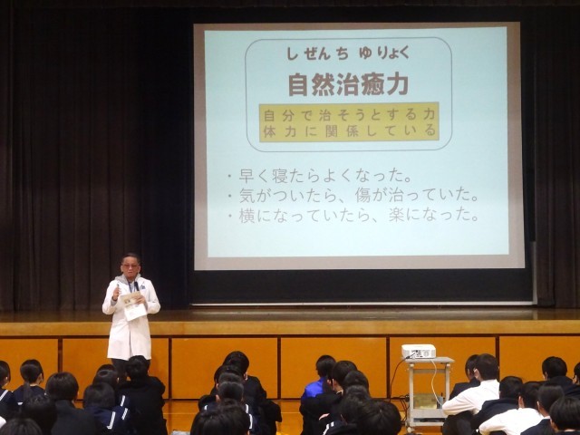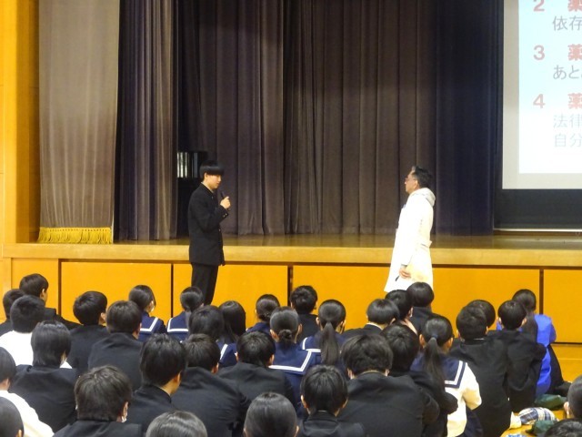 5時間目に学校薬剤師の方を講師に招いて、薬物乱用防止教室を行いました。