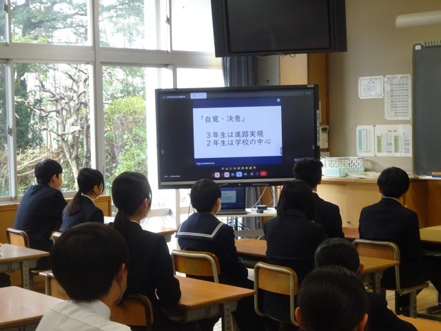 朝のSTで、生徒指導主事から春休みの生活に向けて話がありました。