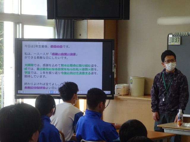 明日から春休みです。今年度を振り返り、次年度に向けての準備を進めてほしいと思います。