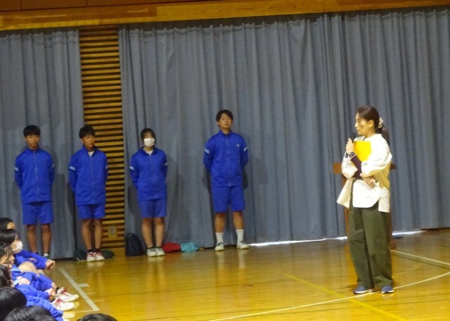 1時間目に、全校集会を行いました。