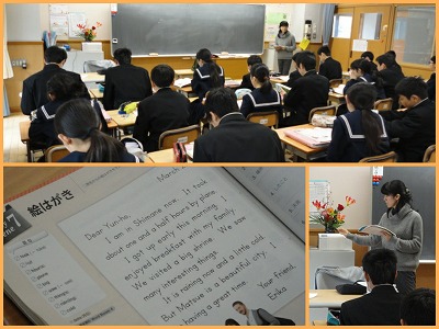 教科書の内容は手書きの文になっていますが、昨日のB日程の問題を見ると、メール文になっています。