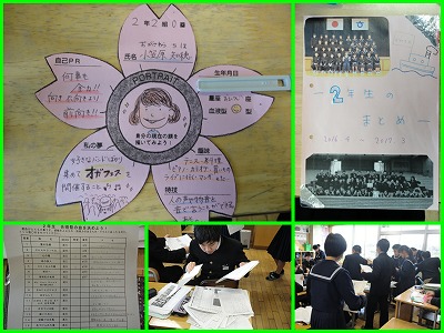 これまでの提出物を配りながら、1年間のまとめを作っています。