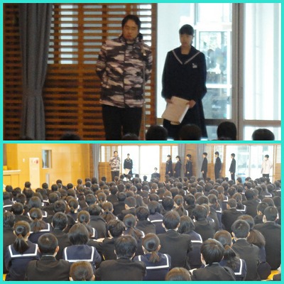 そんな心をもった3年生だったからこそ、素晴らしい学年だったと思います。1,2年生のみなさんも周りの人に対して、思いやりの心をもって新しい学年に進んでください」
