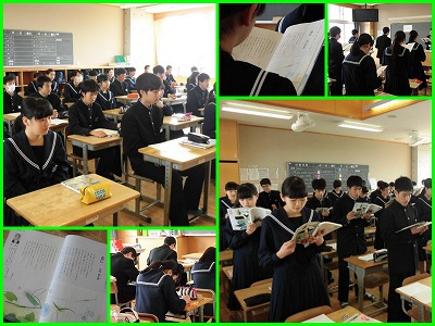 オリエンテーションのあと早速、谷川俊太郎の詩の朗読を始めたクラス。