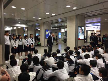 8時33分。生徒は新幹線に乗って,予定どおり名古屋駅を出ました。