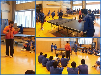 「先生、今日はバック・ハンドだけで打ち合っていますから…」