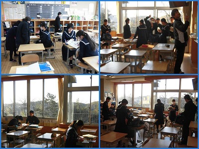 早く教室に入った生徒は、陽だまりで談笑したりテストの準備をしたりして過ごしています。