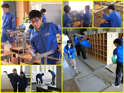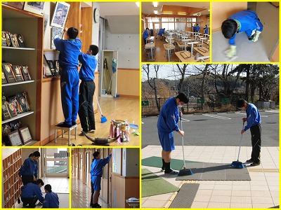 3年生はお世話になった学び舎を一生懸命に掃除する。