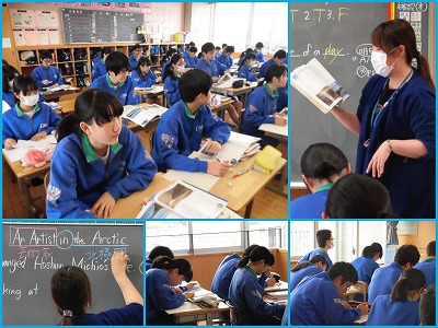 不定詞、現在完了、接触節、関係代名詞、受動態など、今まで習った内容がちりばめられた読み物教材を学習しています。
