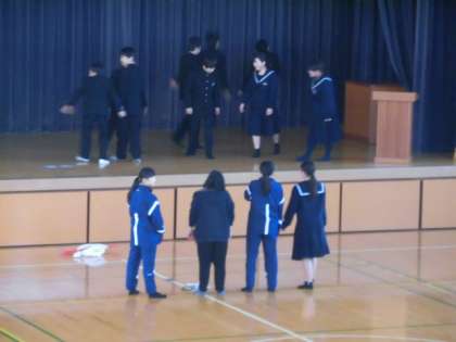 1年生の生徒が体育館で・・・