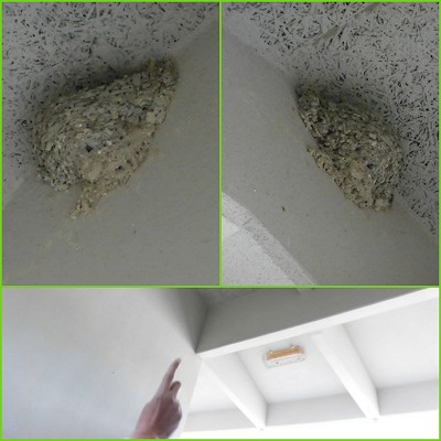 部室2階の階段踊り場にかけられたツバメの巣。