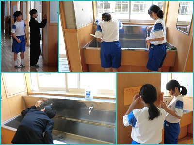 保健委員会は流し台と蛇口の点検。
