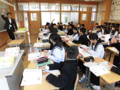 「みんなは昨日の授業で習ったから分かってるよね。はい、誰か」