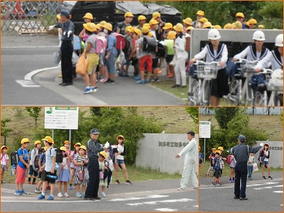 久しぶりに正門前で交通指導員の福井さんの姿がある。