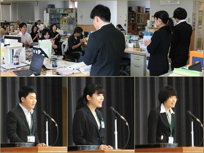 今日から3名の教育実習生が知多中学校で教員になる勉強をします。