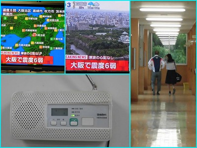 朝、職員室の同報無線機から緊急地震速報が流れました。