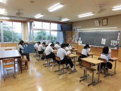 特別支援学級の生徒は、先生とともに落ち着いて読書に耽る。