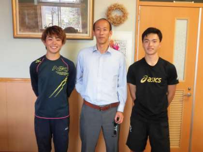 午後から陸上部の練習に二人の卒業生が訪れました。