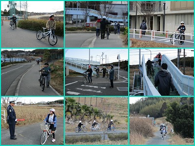 グラウンド横を下る小学生は、あわてて自転車から降りました。