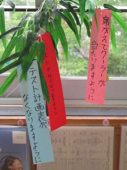 3年生の教室の笹にくくりつけた短冊を読むと・・・