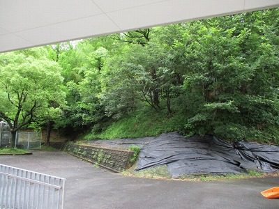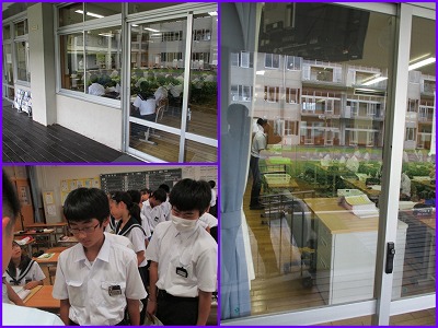 5組(上)は自然の風。教室に入ると、さほど蒸し暑さはありません。