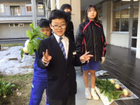 特別支援学級では、自立活動・作業という授業の中で、いろいろなことに挑戦しています。今回の授業では、外作業の一環でたけのこ掘りをしました。先生からの説明を真剣に聞いて、立派なたけのこをとることができました。