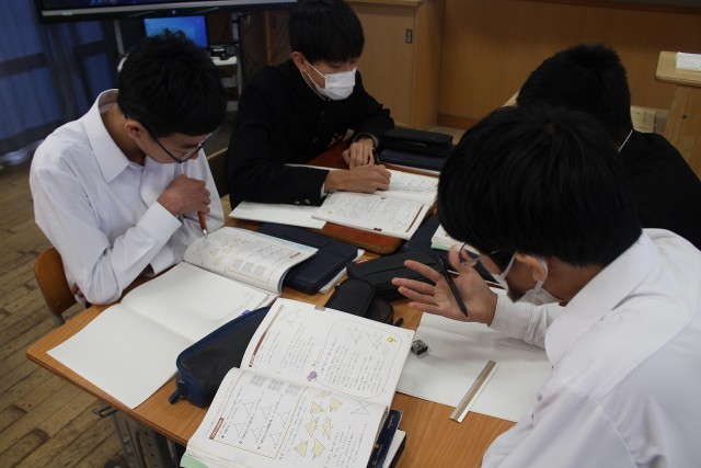 2つの三角形の合同を説明するために、どの辺や角が同じ位置にあるかを考えています。