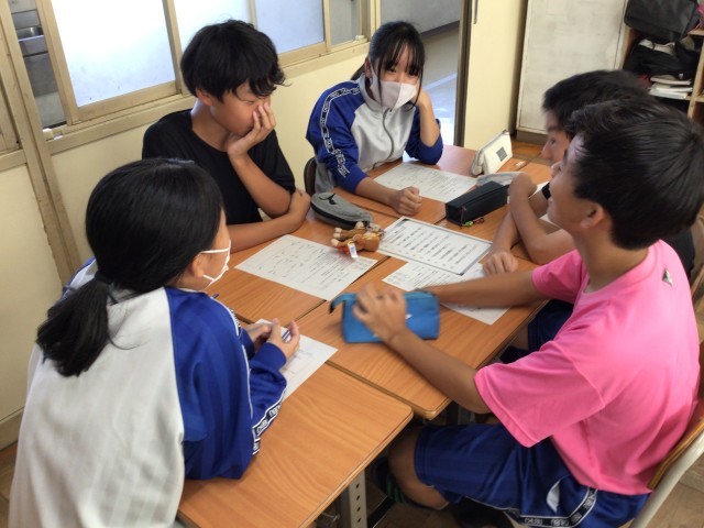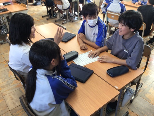 グループごとにお題にしたがって、「好きなスポーツ」や「犬派?猫派?」など様々な話題で話をしたり、聞いたりする活動を行いました。