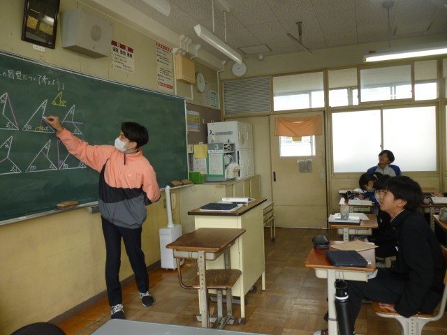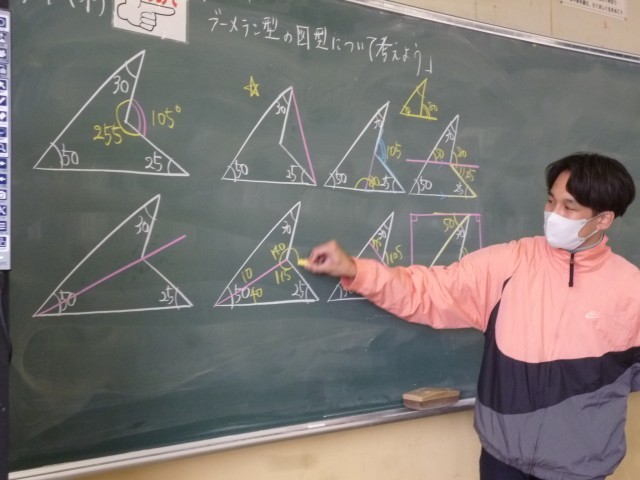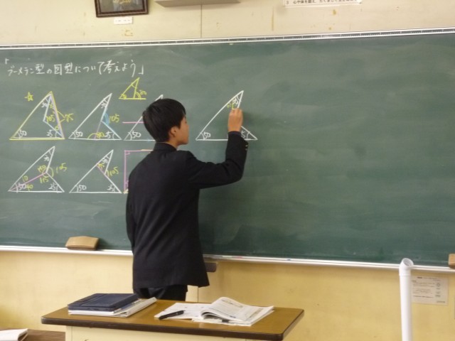 補助線を引いたり、既習事項を思い出したりしていろいろな解き方を考え発表しました。