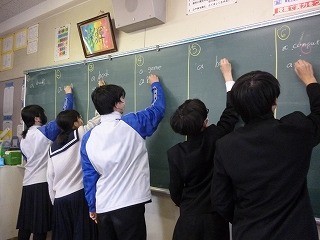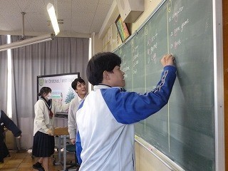 その後は、テーマに対する答えを黒板に書いていくゲームを行いました。