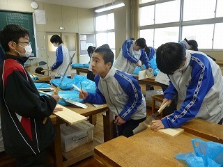 友達に押さえてもらったり、コツを聞いたりして作業をしていました。